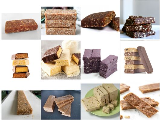 Nozes, sementes, frutas secas, cereais, chocolate, proteínas em pó