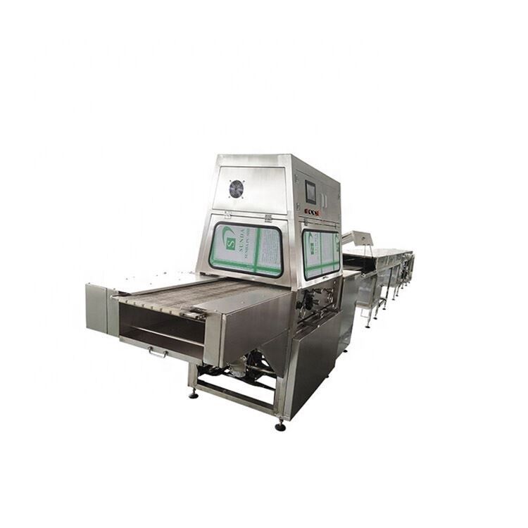 The temperature control system is accurate and stable, with variation kept within ±1°C, making it suitable for dark chocolate, milk chocolate, and functional coating materials. The independently adjustable conveyor height and speed accommodate products of different thicknesses and hardness levels, with a maximum single-line output of up to 2 tons per day.