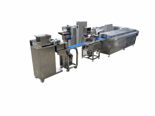 Projetada especificamente para fabricantes de alimentos, esta linha de produção totalmente automatizada de barras de coco de chocolate Bounty integra quatro processos principais: enchimento, injeção, moldagem, revestimento e resfriamento.Com uma capacidade de produção diária de 2 ̊5 toneladas, permite a produção padronizada em grande escala.